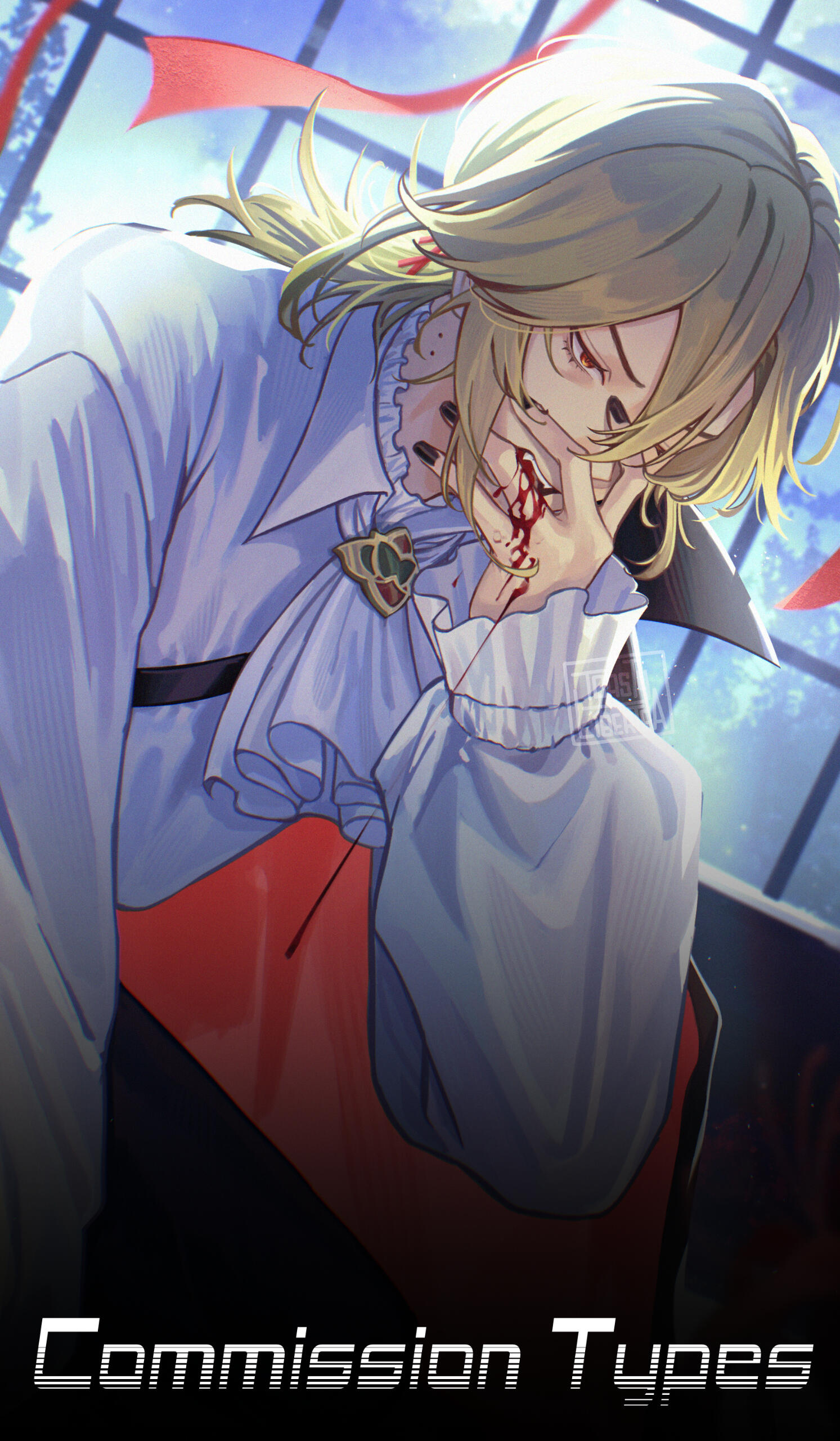 Please read the TOS prior to contacting me.By commissioning me, you are agreeing to the Terms of Service.If you would like a commission that is out of the scope of the types listed below, please contact me. Any questions about commissions can always be directed through DMs (Instagram preferred) or email.